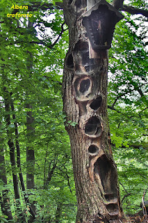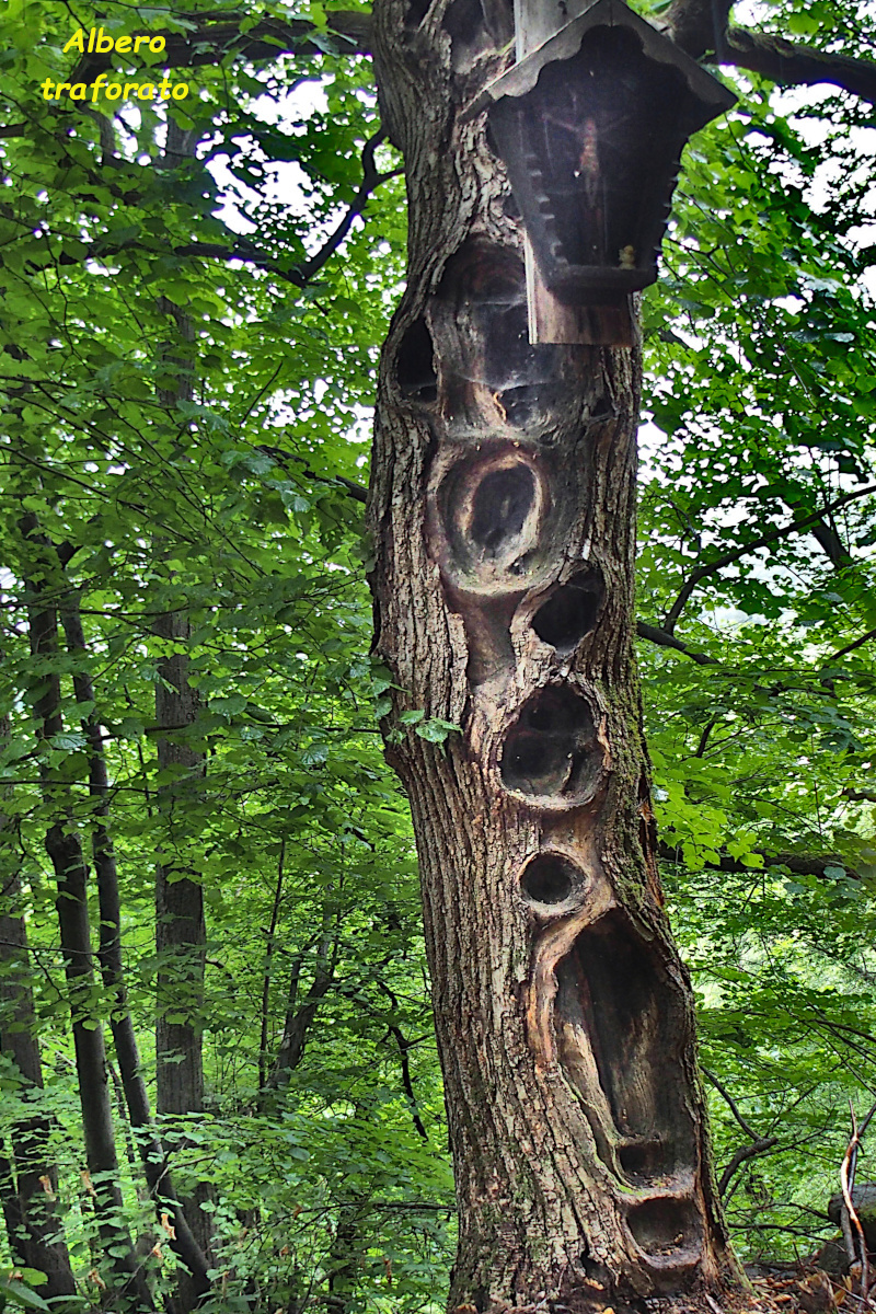 e poco oltre il bivio col sentiero 9 che prosegue in salita verso Monticolo / Montigl e in discesa verso Terlano (0.20-0.40). Sta piovendo e le previsioni danno pioggia per tutta la giornata per cui decidiamo di rientrare. Camminando sul tracciato di un’antica strada lastricata, attraversiamo a m 410 una grossa frana, passiamo accanto a un particolare tronco perforato (Foto 6)